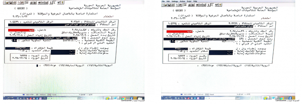 كما تبين انتهاء العقد التأميني لشركة “العاصي” في تشرين الثاني/نوفمبر 2025، قبل أن يُسجّل عقد شركة “العرعور”، المسجلة في وزارة التجارة برقم (103248)، بتاريخ 8 كانون الأول/ديسمبر 2026؛ أي بعد تسعة أيام من انتهاء عقد “العاصي”.