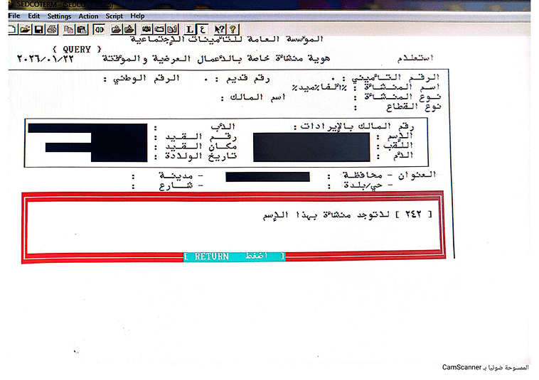 في سياق التحقق من أوضاع العاملات الثماني اللاتي قابلناهن، أظهر البحث في سجلات التأمينات الاجتماعية والعمل عدم وجود أي سجل تأميني لشركة “ألفا ميد”، التي يعمل بها ثلاث من العاملات، رغم أنها مسجلة لدى وزارة التجارة الداخلية وحماية المستهلك تحت رقم (100010).