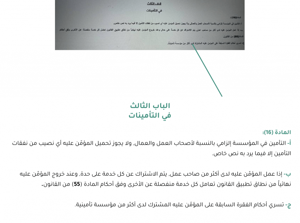 وأكدت مديرة الشؤون التأمينية في الإدارة العامة للتأمينات الاجتماعية، وجود مخالفات ترتكبها بعض الشركات؛ منها تسجيل العمال/ات برواتب أقل من أجورهم/ن الفعلية لتخفيض قيمة الاشتراكات المستحقة، أو الامتناع عن تسجيلهم/ن نهائيًا، رغم أن حصة الشركة من الاشتراك تبلغ 17 في المئة من قيمة العقد.
